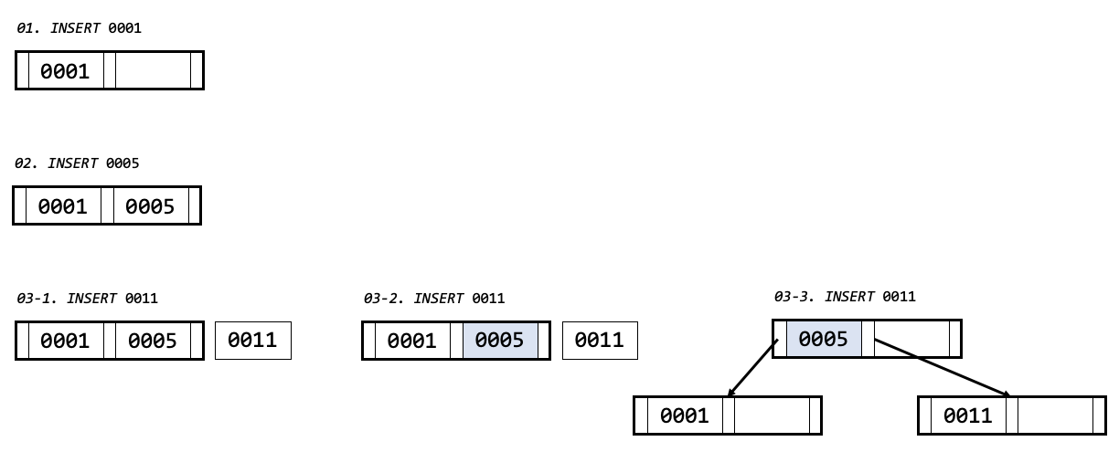 - 03번은 0011 을 루트 노드에 넣을 자리가 없는 경우 입니다.