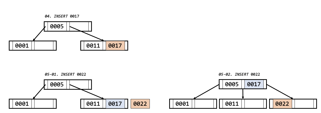 - 리프노드에 자리가 비었으므로, 0017값이 그대로 저장됩니다.